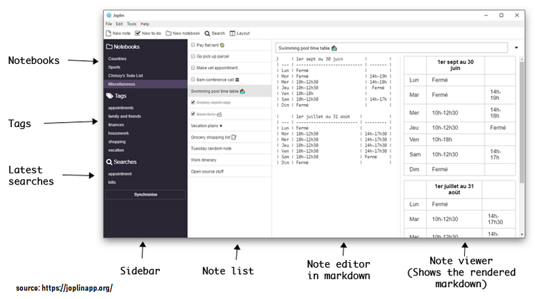 Joplin is a free and open-source note-taking and to-do application that supports: